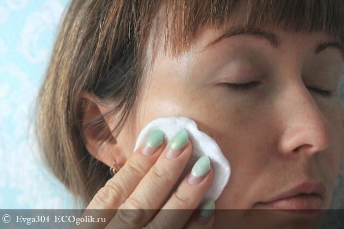 Утром и вечером после основного очищения я протираю ватным диском смоченным в тонике кожу лица и зону декольте, нейтрализуя очищающее средство.