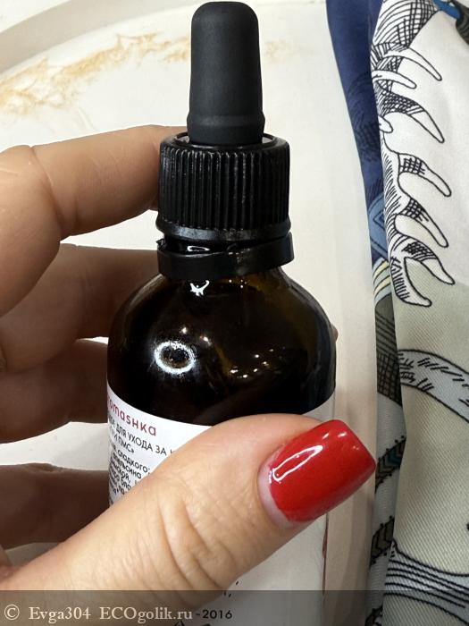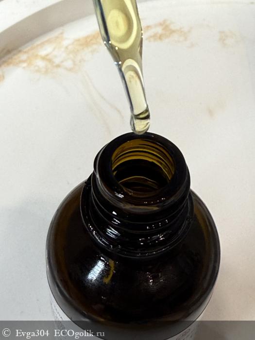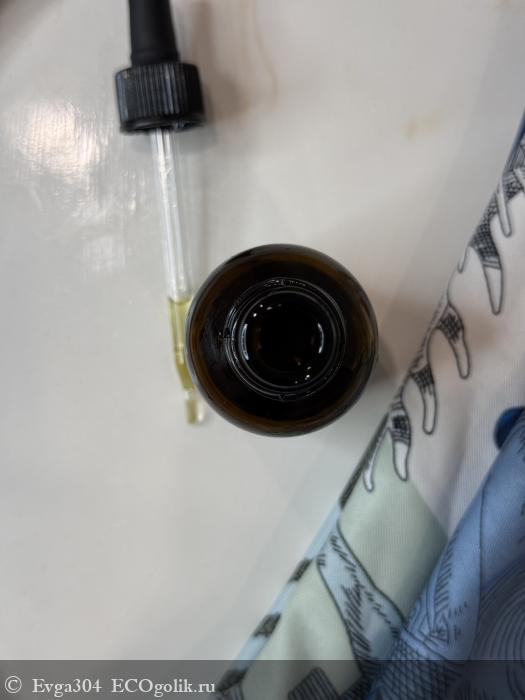 Само масло располагается в темном стекле, с дозатором в виде пипетки и имеет кольцо от первого вскрытия.