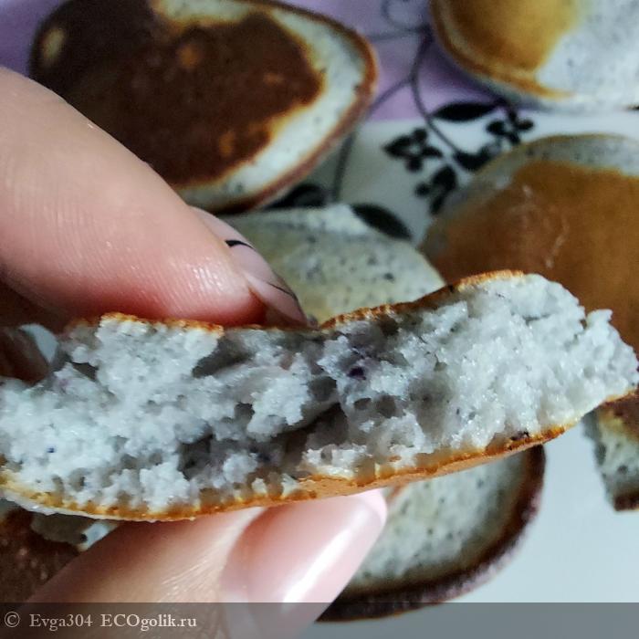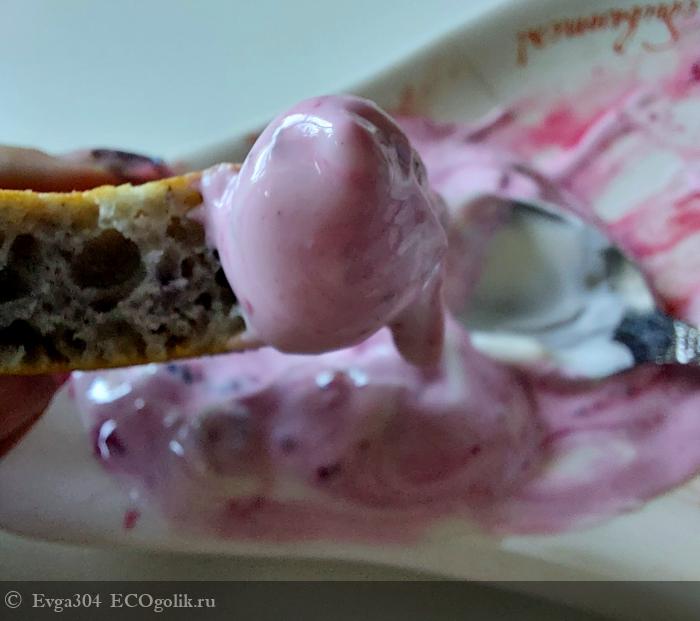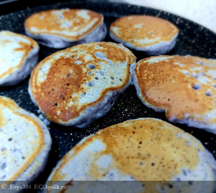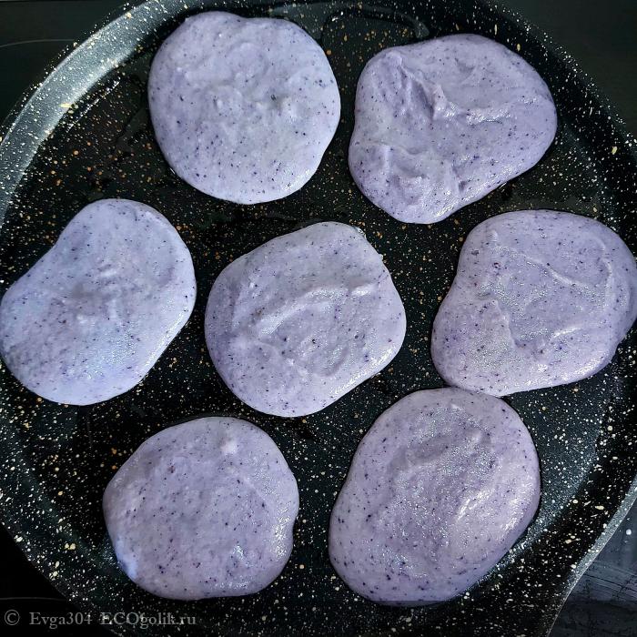 Нам понравилось их употреблять со сметаной, которую смешала с раздавленными ягодками смородины и черники.