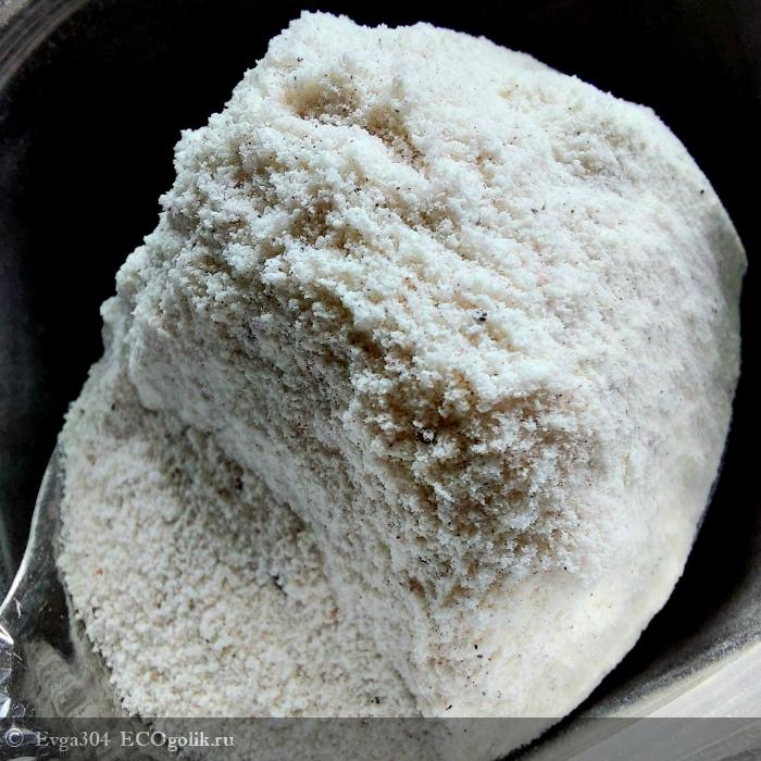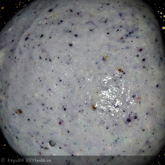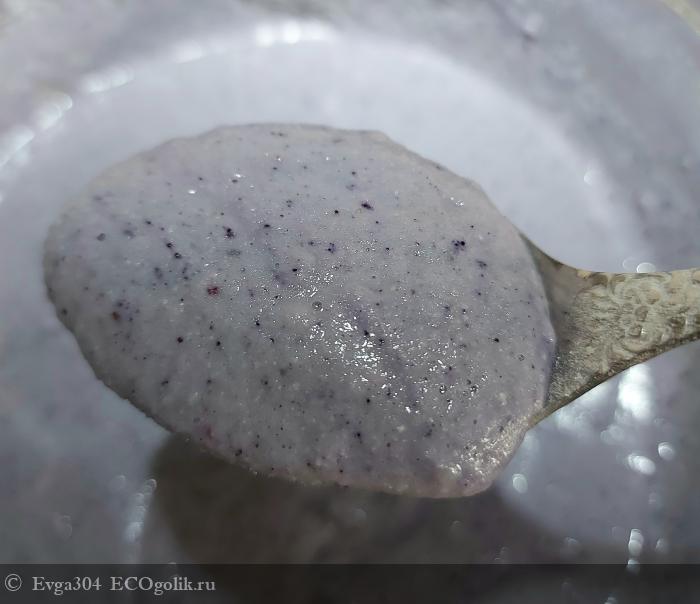 Внутри пакетика находится сама смесь, молочного оттенка с вкраплениями порошка чёрной смородины.