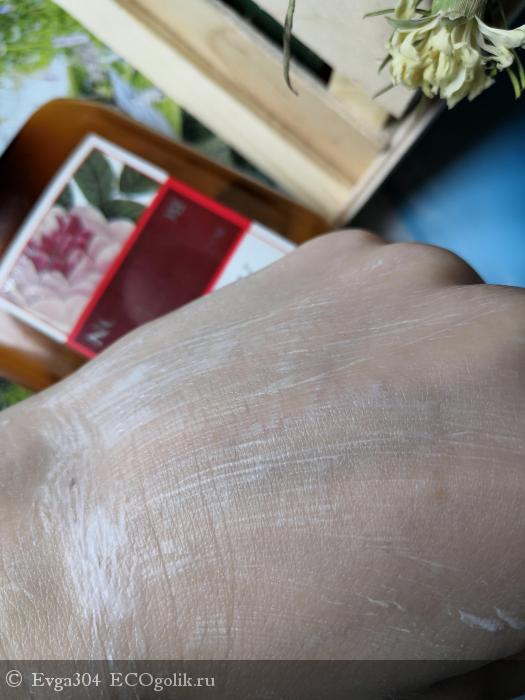 Впитывается довольно быстро, но в процессе нанесения полосит и трудно размазывается на коже.