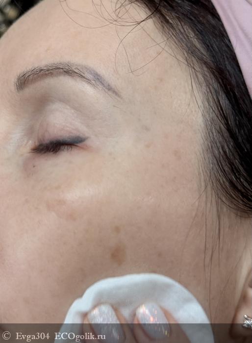 Увлажнение от тонера заметно сразу: вот демонстрация на пальце, как же хорошо поработал продует с кожей. Очищение - тонизация происходит нежно и деликатно.
