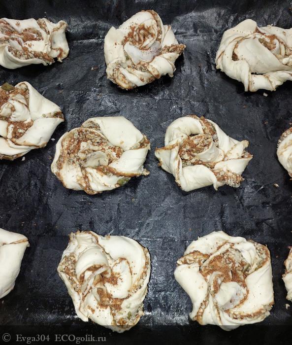 7. Выкладываем булочки на застеленный противень, сохраняя расстояние около 2 см между ними.