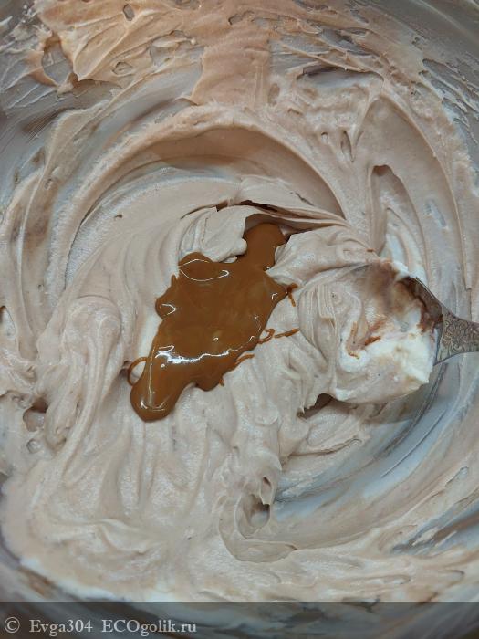 3. Добавляем к маскарпоне остывший кофе/какао и перемешиваем.