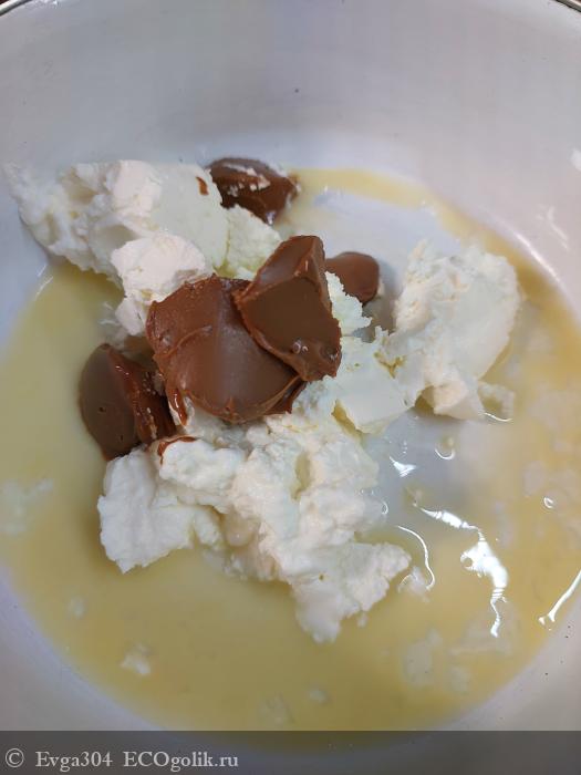 Смешиваем творожный сыр с яйцом и шоколадной пастой. Убираем в морозилку на минут 15-20, чтоб немного затвердел чизкейк.