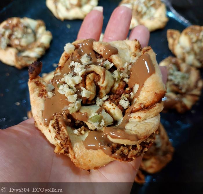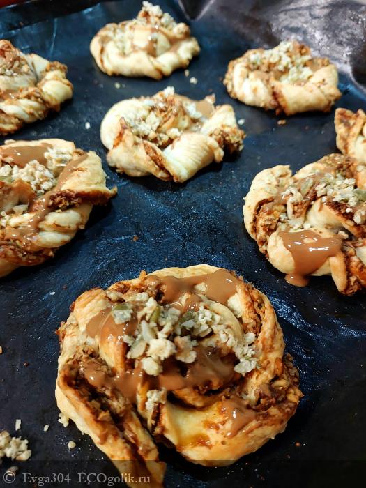 9. Выпекаем булочки в духовке, разогретой до 190ºC, около 20-25 минут, до слегка золотистой корочки. И сверху слегка поливаем шоколадной пастой.