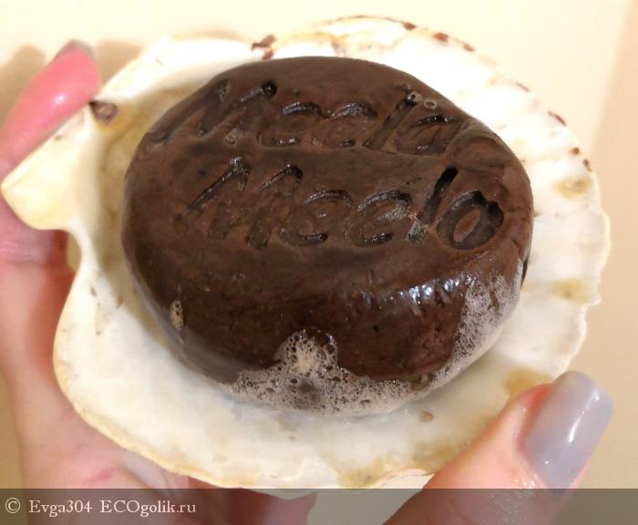 Твёрдый шампунь не совсем твердой консистенции, т. е можно оставить отпечаток от пальца. Шоколадный цвет с вкраплениями чёрного шоколада с ароматом соответственно- шоколада, который так и притягивает к себе и охото откусить кусочек "сладкого" шампуня.