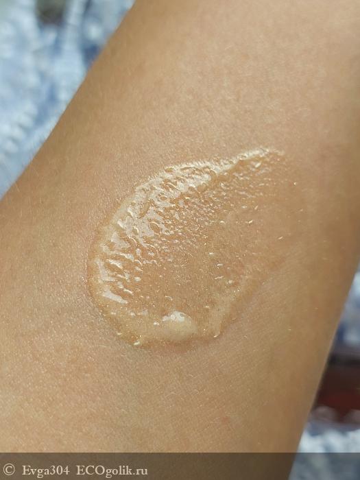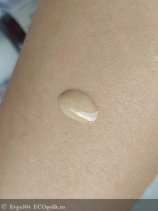 По консистенции флюид жиденький, слегка оттенка загара и с минимальным шиммером.
