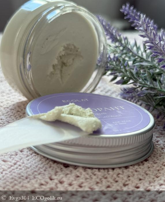 Дезодорант упакован в пластиковую баночку с жестяной отвинчиваемой крышкой, оформление лаконичное, нежное, лавандовое.