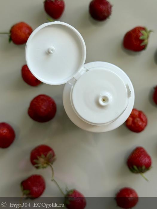 Флакон стандартный — прочный белый пластик с яркой наклейкой, на которой изображены ягодки. На упаковке вся необходимая информация о средстве. Дозатор в виде флип - топ.