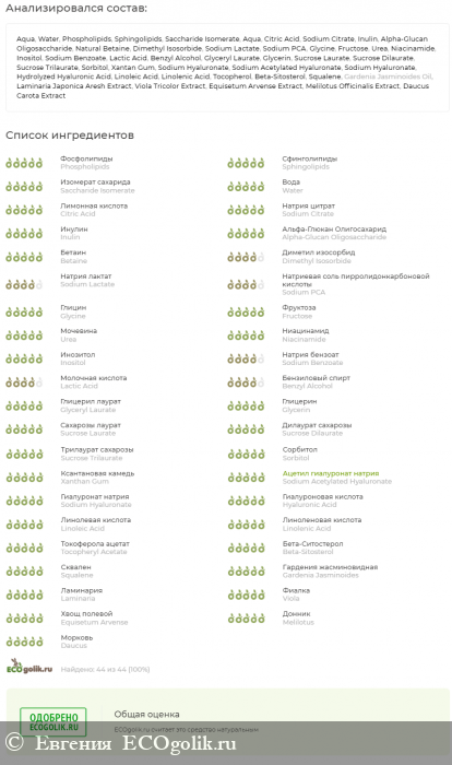 Начну с того, что сыворотка, в принципе, коже подошла - уже облегчение! Ничего! Я не ощущала НИЧЕГО! Ни малейшего пощипывания. Это было просто облегчением - я могла использовать косметический продукт, он не вызывал раздражения, работал, увлажнял. Наконец то!