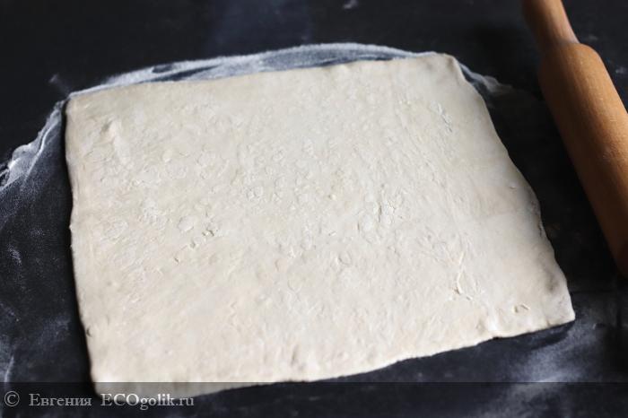 Раскатываем пласт теста примерно на 50-70% от первоначального размера, не стоит делать слишком тонко