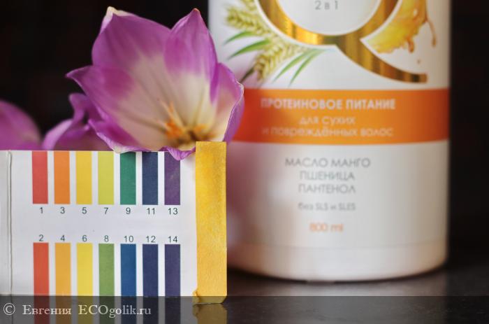 Это манговое чудо показало идеальное нейтральное значение, так что шампунем стали пользоваться спокойно, в т.ч использую его и для мытья волос ребенка.