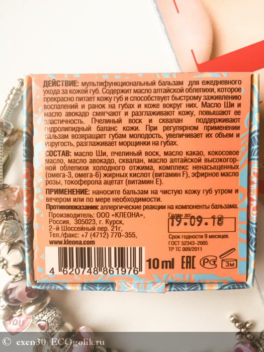 exen30: Бальзам для губ "Облепиха" восстанавливающий Kleona