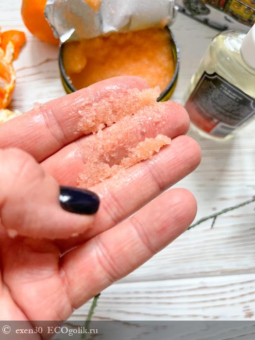 Скраб оранжевый, яркий, с таким же ярким и вкусным бодрящим запахом грейпфрута