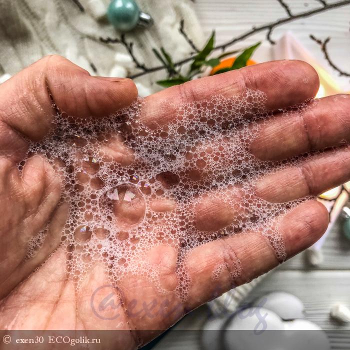 Оно дает сливочную пену, которая прекрасно очищает как кожу тела, так и рук, не сушит, не стягивает, не усугубляет шелушащиеся участки кожи.