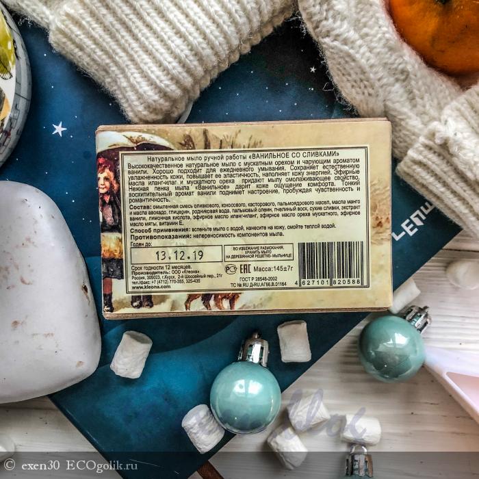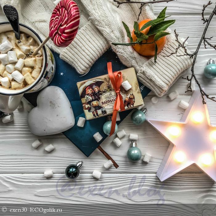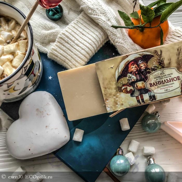"Высококачественное натуральное мыло с мускатным орехом и чарующим ароматом ванили. Хорошо подходит для ежедневного умывания. Сохраняет естественную увлажненность кожи, повышает ее эластичность, наполняет кожу энергией. Эфирные масла иланг-илаг и мускатного ореха придают мылу омолаживающее свойство. Нежная пенка мыла «Ванильное» дарит коже ощущение комфорта. Тонкий восхитительный аромат ванили поднимет настроение, пробуждая чувственность и романтичность..."