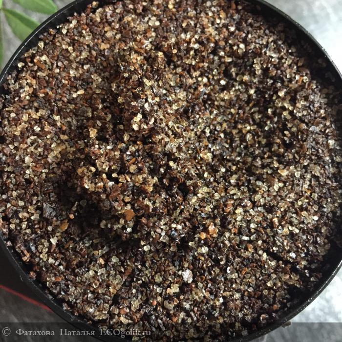 Состав (INCI): Himalayan pink salt, Ground robusta coffee beans, Olive Oil refined, Vitis vinifera (Grape) Seed Oil, Simmondsia Chinensis (Jojoba ) Seed Oil, Macadamia ternifolia seed oil, Cocos nucifera (coconut) oil, Prunus amygdalus dulcis (sweet almond) oil, Citrus aurantium bergamia (bergamot) essential oil.