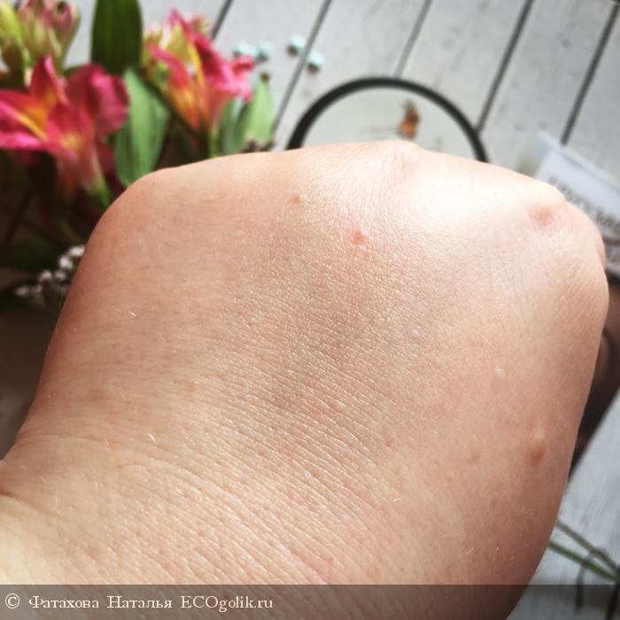 Абразивными частичками выступает морская соль, кофе и цедра апельсина. Хочу обратить внимание на ее помол – он очень комфортный, частички не острые, даже я бы сказала закругленные. Абсолютно не корябают. В составе ценнейшие уходовые масла: ши, кокос, миндаль, авокадо. В составе натуральные эфирные масла, экстракты растений, водорослей. Полезный витамин молодости Е, который в том числе защищает от ультрафиолета. Подкрашено натуральным безопасным красителем аннато, который используют для подкрашивания сыра, например. Очень довольна составом.