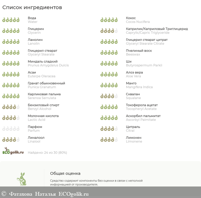Пару компонентов анализатором не найдено, я состав одобряю.