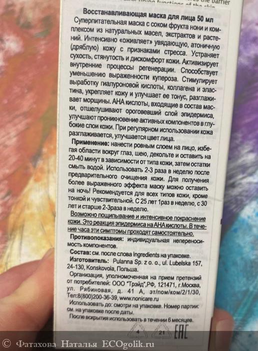 Фатахова Наталья: Deluxe Восстанавливающая маска для лица от Nonicare