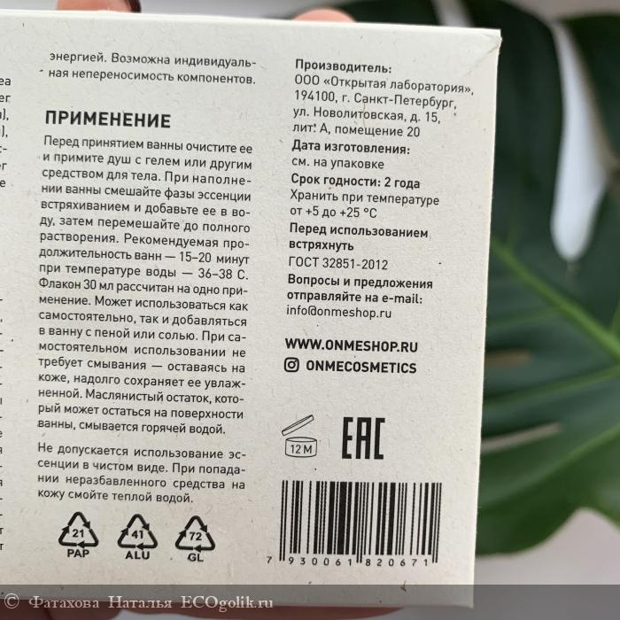 Фатахова Наталья: Двухфазная эссенция для ванн №3 от Onme