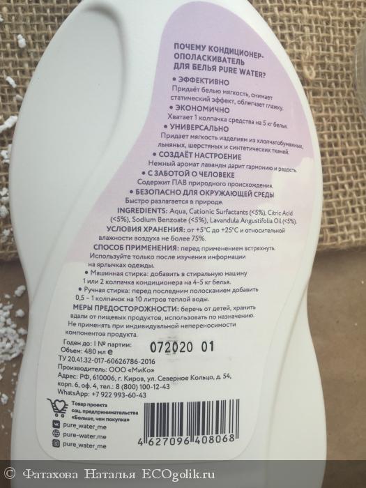 Фатахова Наталья: Кондиционер Ополаскиватель для белья Французская Лаванда Pure Water от компании Mi&Ko