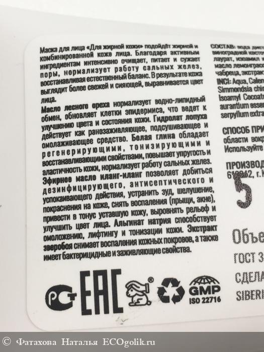 Фатахова Наталья: Маска для лица "Для жирной кожи" от Siberina