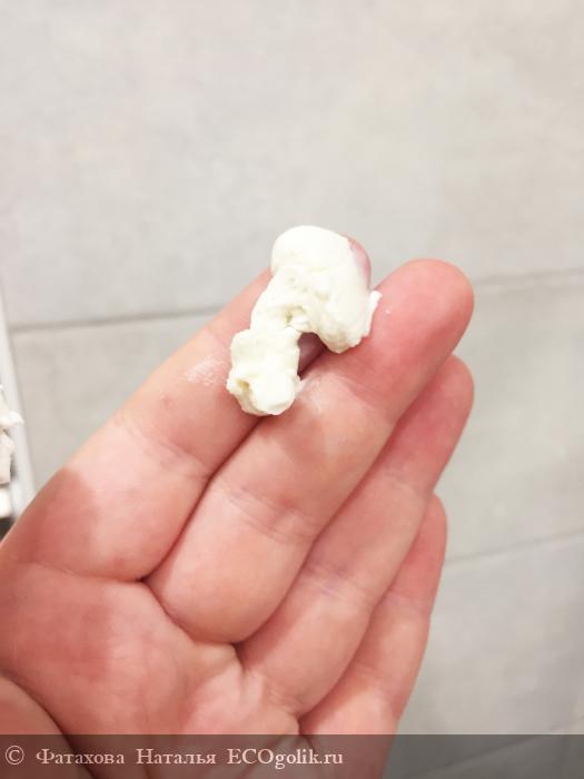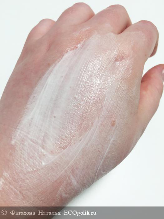 Консистенция густая, из тюбика выдавливается легко. По коже распределяется тоже без проблем. Я давно не встречала такой консистенции, но мне она прям понравилась.