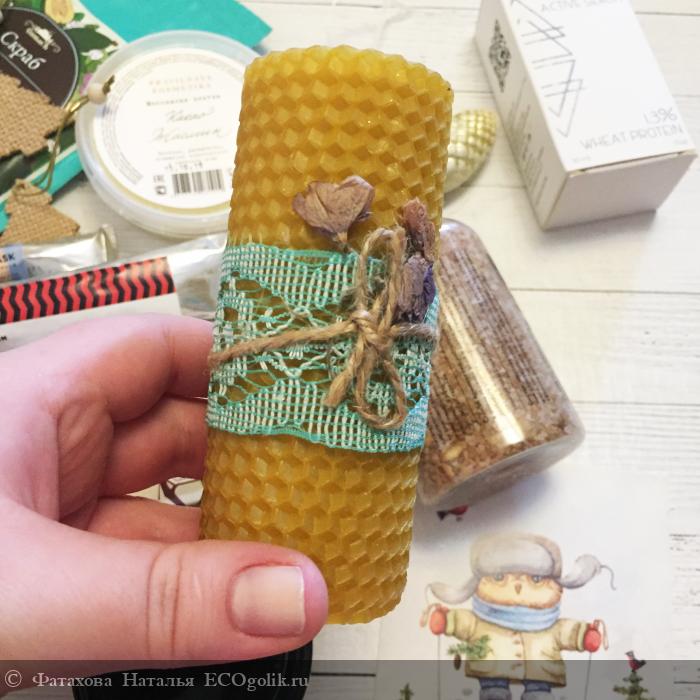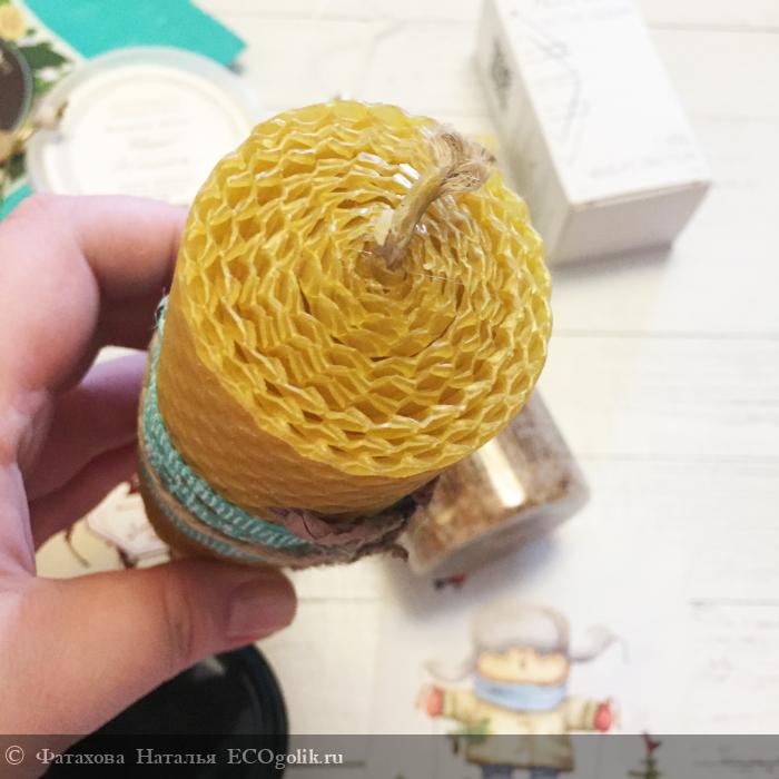 А от этой свечи пахнет настоящим пчелиным воском. Муж сказа - как у деда в деревне от ульев пахло. Это очень мило! и навевает воспоминания.