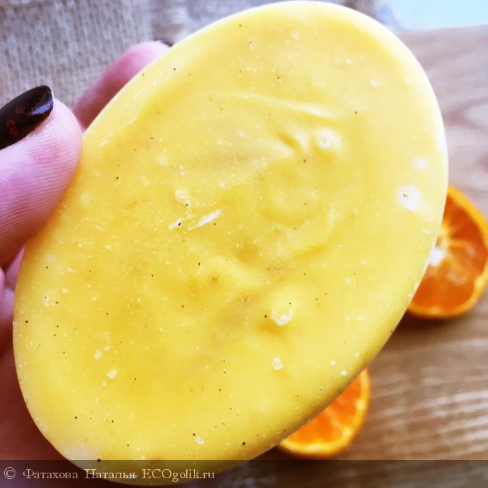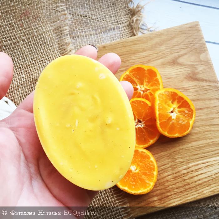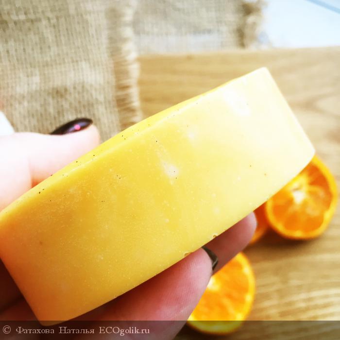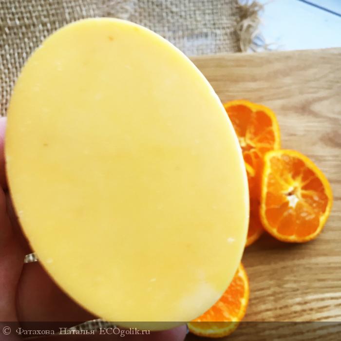 Цвет у мыла оранжевый, я бы больше сказала, что по цвету похож на облепиху, а не на апельсинчик). Но вообщем-то не важно какой оттенок оранжевого у мыла, оно все равно поднимает настроение.
