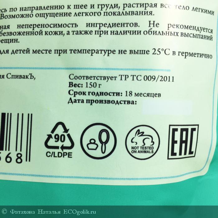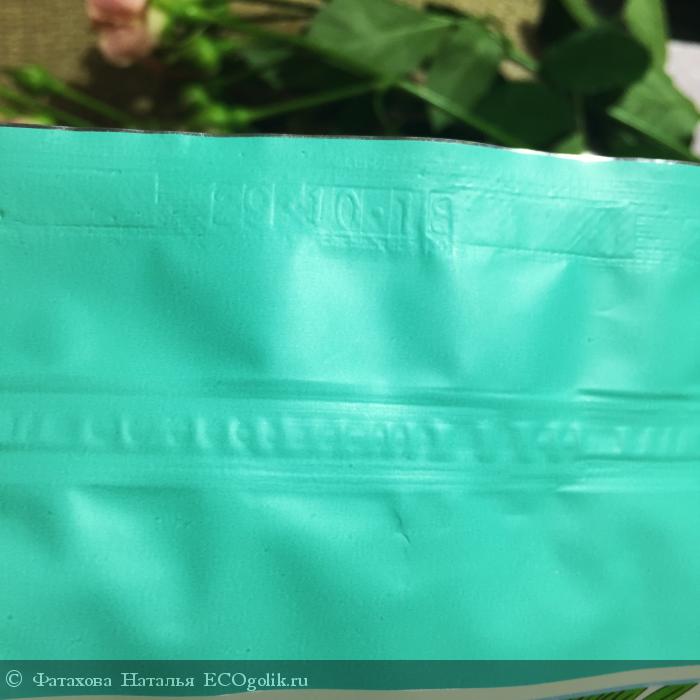 Дата изготовления указана на самом верху пакетика, данную часть я придется обрезать, чтобы открыть пакет со скрабом. Вероятно нужно пересмотреть место указания даты изготовления. По крайней мере мне было бы удобнее всегда видеть данную дату. С даты изготовления срок годности 18 месяцев.