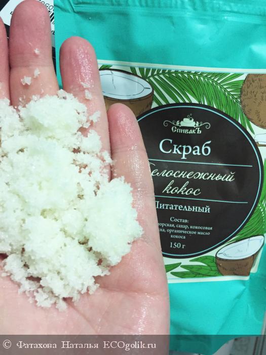 Честно признаюсь, мне очень понравился Скраб Белоснежный кокос от компании Спивакъ.