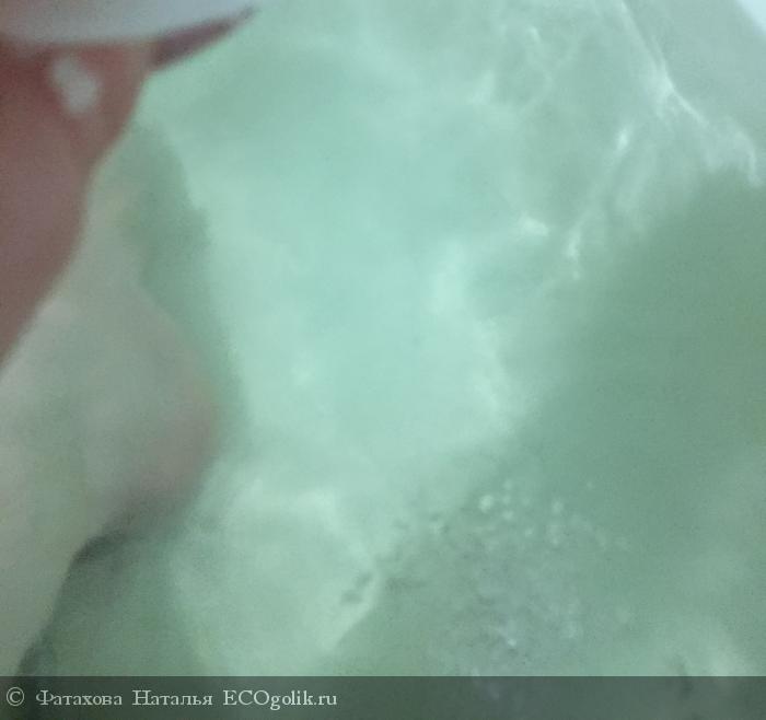 Состав натуральный, сомнений нет. Только эфирки могут давать такой непонятный запах, а также отсутствие цвета. Цвет воды при контакте с солью не меняется. Хотя если приглядется - цвет все-таки изменился, стал голубее)) может быть это просто освещение легко по-другому, на фото видно это (цветокоррекцию не делала)