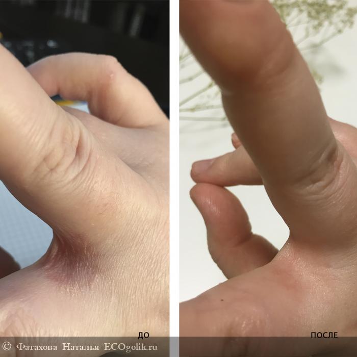 И еще иногда у меня аллергическая реакция на мыло, вызывающая страшный зуд и шелушение между пальцев. Крем снимает зуд, справляется со снятием шелушения, последствиями - на 100%.