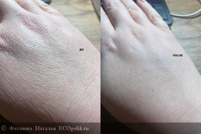 Кожа после нанесения не блестит жирным блеском, матовая и ровная