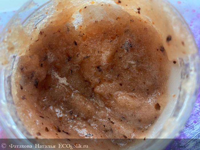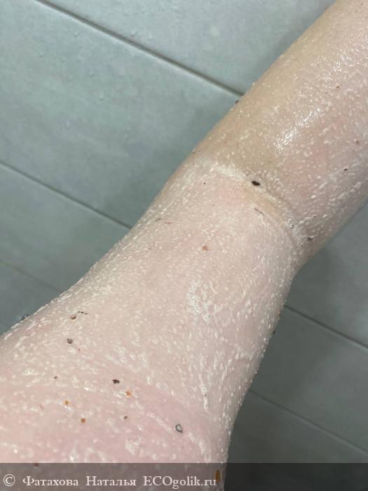 От применения я в восторге. Он очень деликатно, при этом качественно очищает кожу от шелушений и питает ее за счет масляных компонентов состава, не окрашивает кожу и полотенце, очень легко смывается, благодаря гидрофильности. Кожа после - шик! Она мягкая, гладкая, увлажненная, визуально подтянутая, ухоженная. Мне очень полюбился этот скраб.
