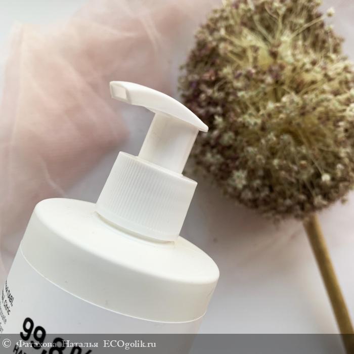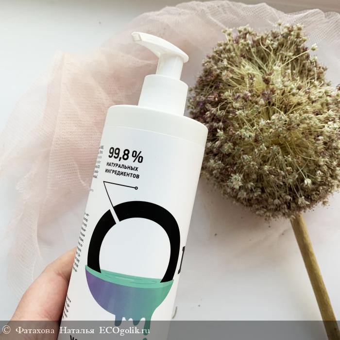 Первое, что привлекает - отличный объем 400 мл. Удобную упаковку тоже не оставлю без внимания - белый непрозрачный флакон из пластика с удобным нажимным, поворотным дозатором. Прикольное оформление этикетки.