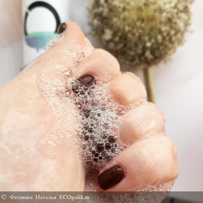 Мыло нужно совсем немного для использования. Я не могу сказать, что мыло при соединении с водой образует огромную массу пены, но при этом все же обеспечивает надежное, качественное очищение кожи рук. Я часто мою руки всегда (что до пандемии, что в настоящее время), поэтому ищу для себя средство, которое не будет агрессивно воздействовать на кожу рук и не будет сушить ее. Двух нажатий на дозатор достаточно, чтобы убрать с кожи ощущение грязных рук. Мыло не вызывает никаких аллергических реакций, раздражения, сухости, стянутости.