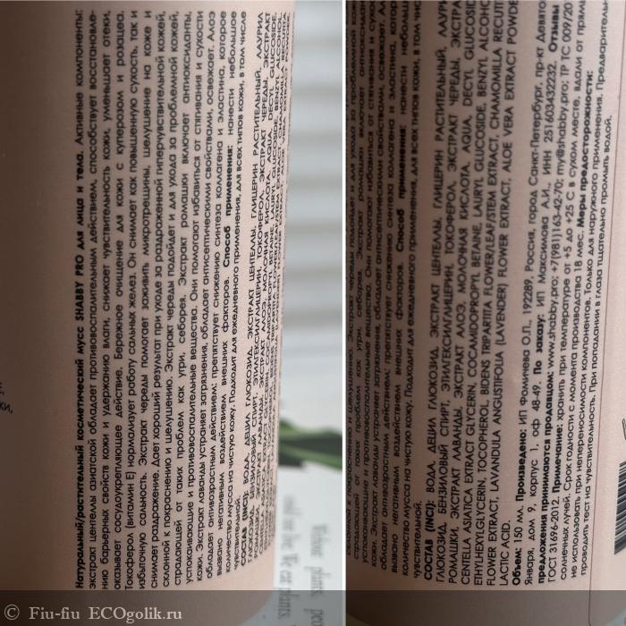 После применения нет никакой липкости и чувства стянутости. Кожа не шелушился и не сохнет. Тон кожи ровный и спокойный, нет никаких покраснений, жжения и прочих неприятных моментов. Кожа после мягкая, чистая и увлжажненная. Пенка от бренда Shabby pro меня по- настоящему впечатлила. Действительно стоящее и натуральное средство.