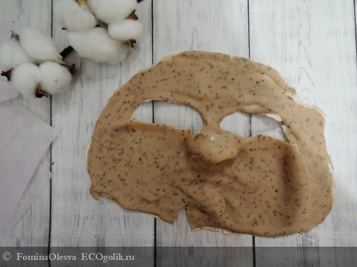 - Альгинат, красная глина и листья зеленого чая адсорбируют излишки кожного сала, улучшают отшелушивание отмерших клеток кожи и усиливают дренаж пор.