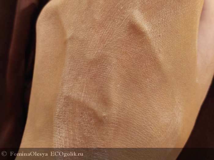 На лице этот эффект не так заметен, долго растирать не приходится.