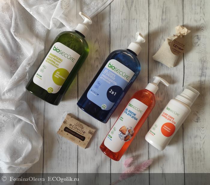 От Биосекур взяла стратегический запас шампуней для мужа, а гель с миндалем положили в подарок