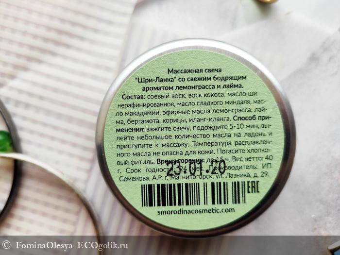 Сегодня расскажу про совершенно новый и непривычный для меня формат косметического средства. Встречайте, моя первая натуральная свеча для аромамассажа "Шри-Ланка" марки Smorodina