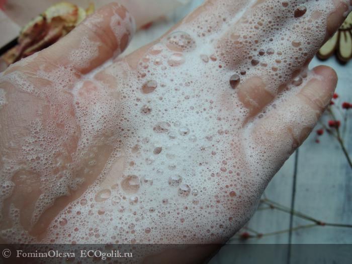 Мыло при контакте с водой легко отдает пенку. Она получается нежная и обильная. Само мыло размягчается, но не размокает. Создавать ему особенные условия не нужно, но мыльница должна быть строго правильная.