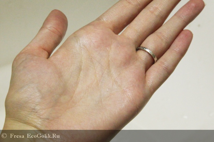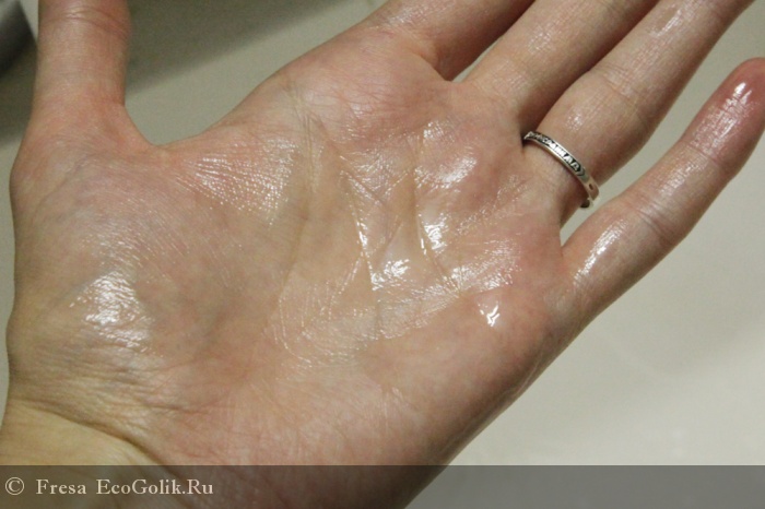 После того, как средство смыто и кожа высушена полотенцем. Видно, что кожа слегка блестит, но это блеск не жирный, а именно здоровый блеск увлажненной и напитанной кожи.