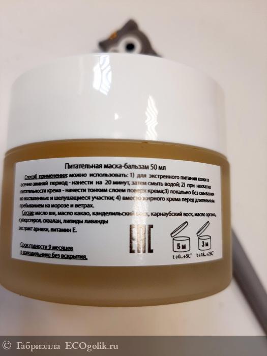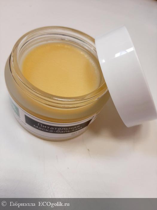 Маска представляет собой плотную основу, чуть желтого цвета, маслянистую, не жидкую. Если держать баночку в тепле, то масла и воски в маске подтаивают и она становится более мягкой. Но я держу в холодильнике, тогда она становится как крепкое масло, зато и экономичная очень.