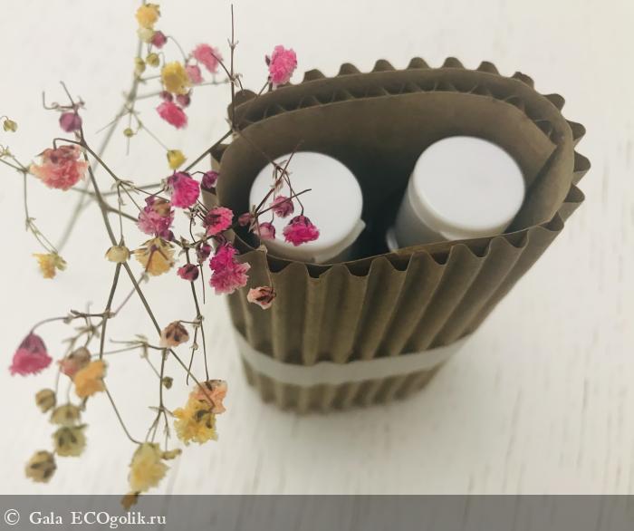 В посылке флюиды (2 штуки) были упакованы вот в такой тубус. Вообще всю пересылочную упаковку можно сдать в переработку. Пишем плюсик