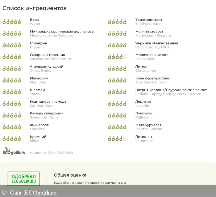 Ах какая прелесть! Так люблю, когда Экоголик находит все ингредиенты! Ну вот ленивая я, неохота искать чего-то и где-то, тем более химик из меня никакой. К тому же все с составом отлично!