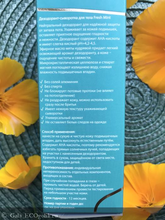 Дезодорант очень интересный и безвредный в плане состава. Комфортно наносить (и почти нет ограничений). Не имеет лишнего аромата, что особенно актуально тем, кто трепетно относится к подбору духов, им совсем не надо, чтобы дезодорант перебивал все их оттенки аромата.
